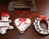 5 out of 5 starsOMG! Are these ever yummy, completely scrumptious, and totally realistic; every detail! The absolute BEST cookie ornaments ANY WHERE!! There's even enough frosting for the most extreme frosting addict!! Thanks so much for the FAST shipping, EXCELLENT service, and most of all, for offering these wonderful ornaments which I will cherish! They are already on my tree looking more than FABULOUS! Even my 22 year old son LOVES them. He wanted one for breakfast! Having a sweet tooth runs in the family! nThanks again! Happy Thanksgiving and Merry Merry Christmas to you and yours!! nLoving my ornaments, nMarie