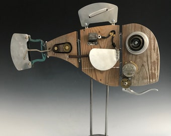 Synchro - Found Object Robot Assemblage Fish by Brian Marshall