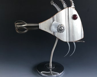 Mercury - Found Object Robot Fish Assemblage Sculpture By Brian Marshall