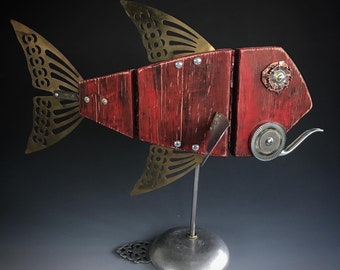 Guppy - Found Object Robot Fish Sculpture by Brian Marshall