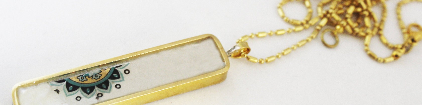 My Adrissa Design collection includes pendant, necklaces, bracelets, earrings, rings and ceramic pieces which feature images of Persian tiles and art pieces. I also draw most of my original works and design my OWN work. This beautiful pieces are one of a kind and belong to my name and collection.
