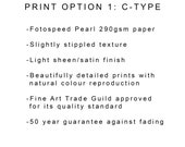 All items for sale are open editions (unless specified otherwise) and are printed using the highest quality materials. I outsource all my printing to professional labs that I have chosen after doing extensive test printing, so you can be sure that the print you receive will be of the highest quality.