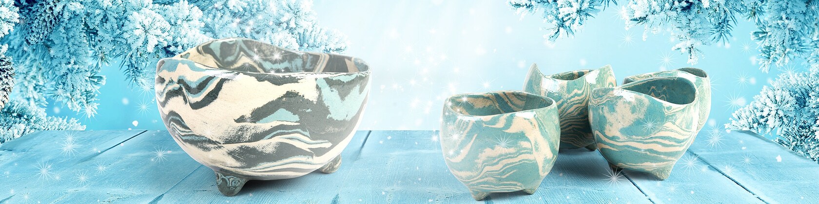 Agateware pottery in wabi sabi style