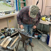 I shod my first horse in 1977 and it became my profession in 1982. A couple years later I came across some nice iron work and thought I could do that, so I gave it a try soon I had created a monster, in my head. I continued to tinker at this new hobby until after I got married in 1996. Horse shoeing is slow in the winter here and I needed the income, so my wife and I started to actively sell my ironwork in 1997.