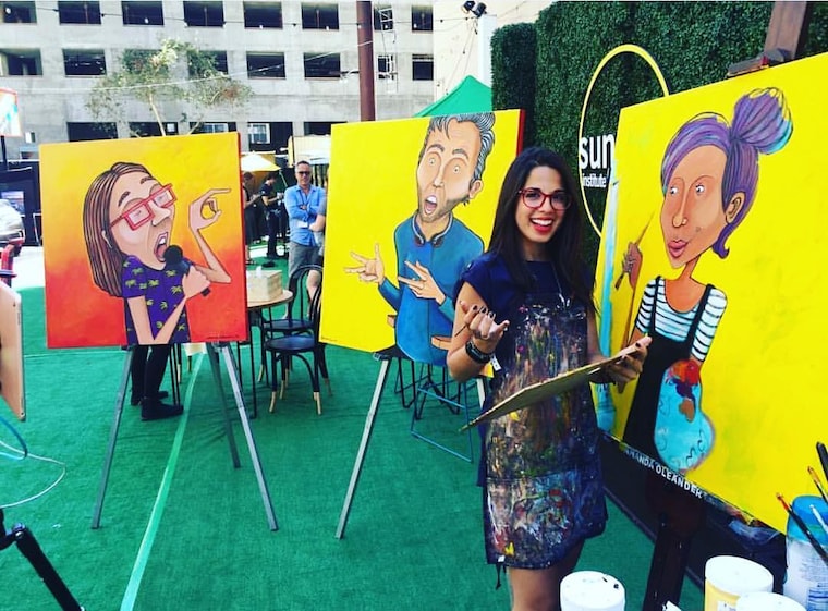 Amanda Oleander is a Los Angeles based fine artist. Oleander's artwork became internationally recognized after working for E! Entertainment as their first in-house full time illustrator illustrating for their articles in 2014. In 2015 Oleander became a full-time at home artist. She started to paint live from home and broadcast her work on a live streaming app, Periscope. Oleander's art became viral after she gained a following of over half a million followers and attention in the media. She has been featured in The New York Times, Seventeen, Cosmopolitan, Vanity Fair, and The Hollywood Reporter to name a few. Shortly after she signed with United Talent Agency.
