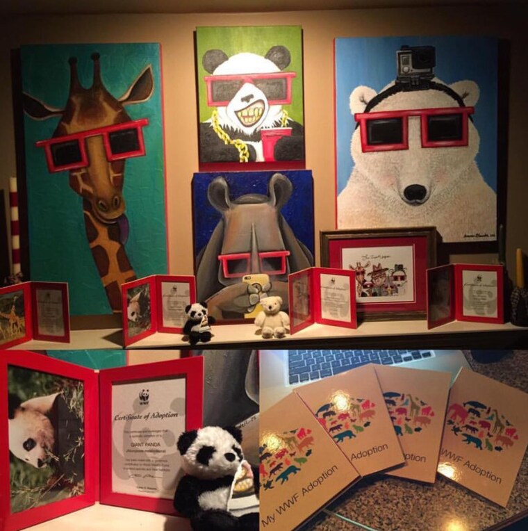 The Endangered Species Collection is a series of paintings inspired by endangered species and the Digital Age. For each painting sold an animal of that species is symbolically adopted through the World Wild Life Fund. The art collector receives the painting with the certificate of authenticity along with the adoption certificate from WWF after the adoption has been processed.