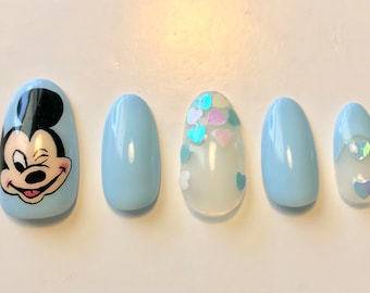 Mickey Mouse Hand Painted Gel Press On Nails/Fake Nails