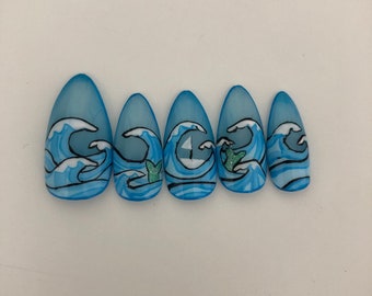 Ocean Wave Hand Painted Press On Nail/Fake Nail