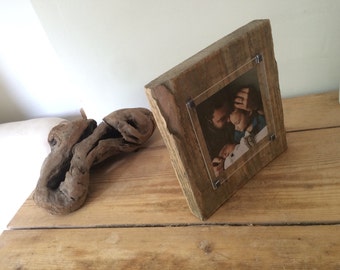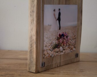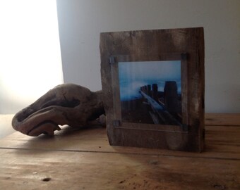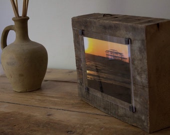 reclaimed wood photo frame - photo gift ideas - bespoke - sea groyne - wood home decor - beach photography - photo didplay - one of a kind -