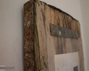 Industrial chic - personalised gift - reclaimed wood frame - photo frame - 5th wedding anniversary - bespoke - wedding gift - note holder -