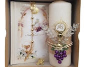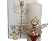5 out of 5 starsOrdered this for my niece's first communion. I reached out to ask if I could trade out the candle for another one I'd seen in their shop. They responded to my message quickly and were able to swap it out. Once I ordered it was shipped and delivered quickly. The items themselves were well packed and beautiful.