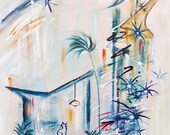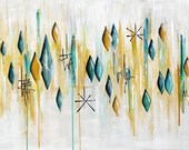 Do I do custom pieces? Yes. Please see comments from Stacey for whom I did a painting with her specific size and coulour requirements for mid-century modern decor.