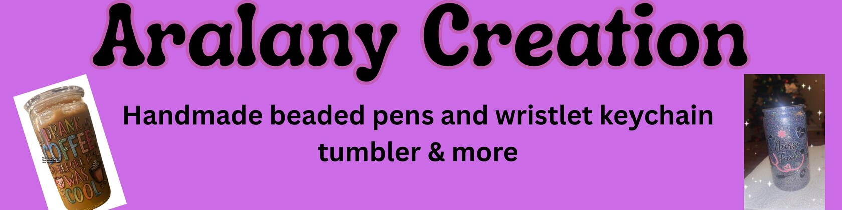 My shop is name AralanyI make beaded keychain, pens, and reel badges.. I also make mini scented candles.. my favorite thing to do is snow globe tumbler cups