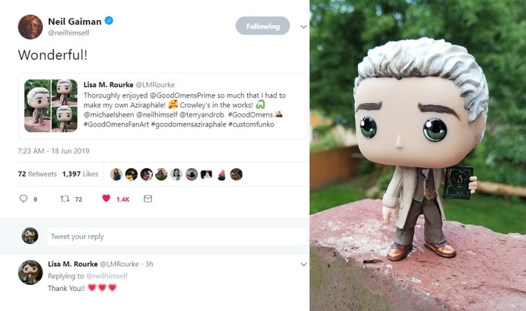 Comment and like from Neil Gaiman about my custom Aziraphale from "Good Omens" -