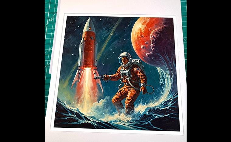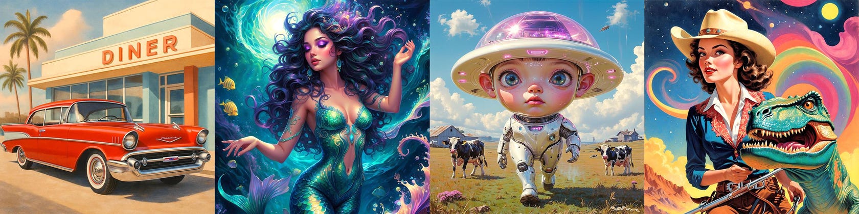 Today, Peter brings that traditional foundation into the modern world by creating retro-inspired artwork with the help of AI tools. His background in color, composition, and storytelling guides every piece, keeping his signature “Storybook Retro” spirit alive.