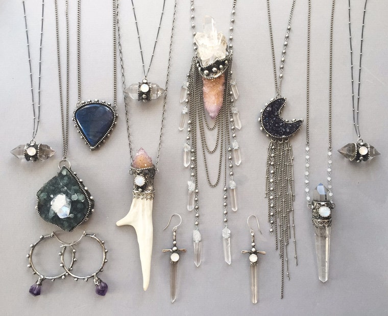 I am a mostly self taught jewelry designer with a formal training in painting and illustration. After college I spent many years studying the healing arts including Reiki and Shamanic practice. I trained for 2 years as an apprentice to an Apache Holy One and lineage keeper of her people, where I learned so much about myself and the interconnectedness of all things. I have traveled to many sacred sites around the world and researched ancient civilizations my whole life. One thing that always struck me was how important jewelry and sacred adornment was in ancient and tribal cultures in ceremony and spiritual practice. I strive to create pieces with that in mind, that are more than just a pretty pair of earrings or necklace, but that have a deeper meaning and an uplifting and protective energy. The designs for my jewelry come directly from my soul, sometimes they come in visions and dreams, or sometimes I will just sit down and my hands will create something without putting much conscious thought into it, like I am being guided from an outside force. Right now my favorite is working with unique hand picked stones and minerals. These beautiful specimens inspire me and speak to me as to what they would like to become. I truly love what I do and I am forever grateful for the opportunity to make a living following my creative and spiritual dreams! Thank you to all who support my journey and I hope to inspire yours :)