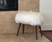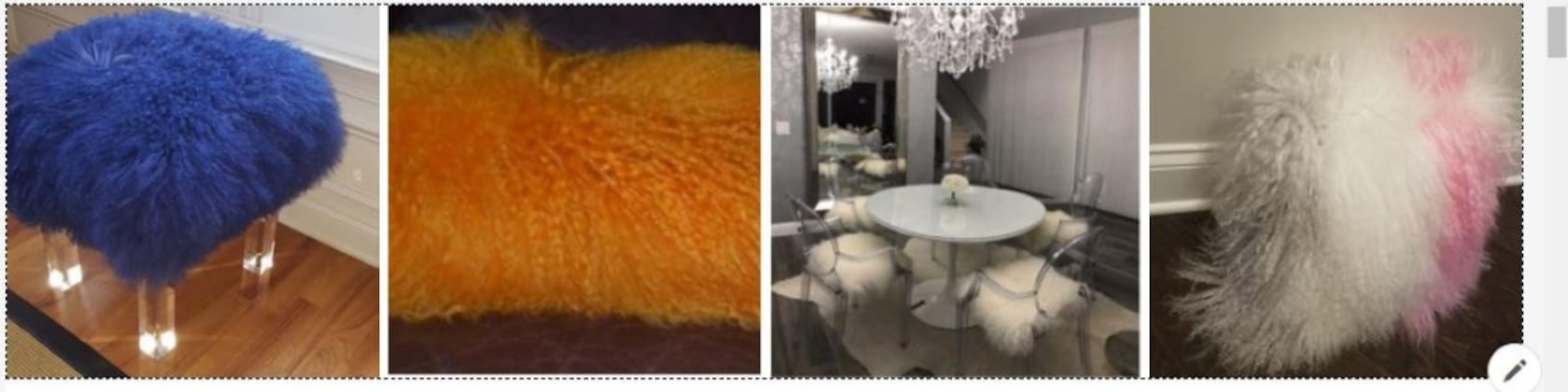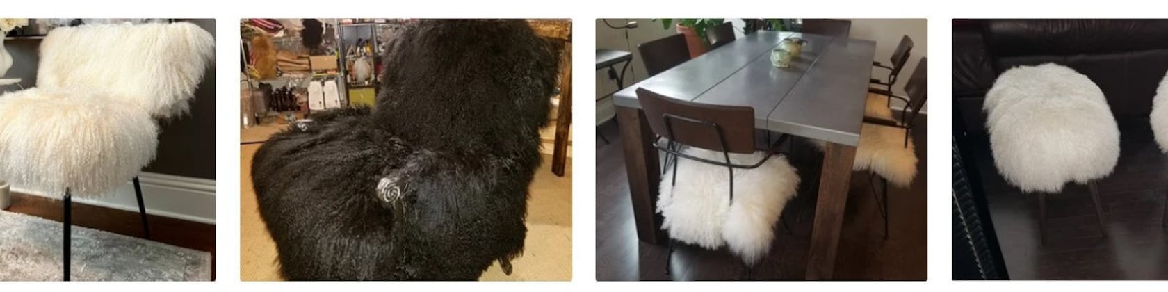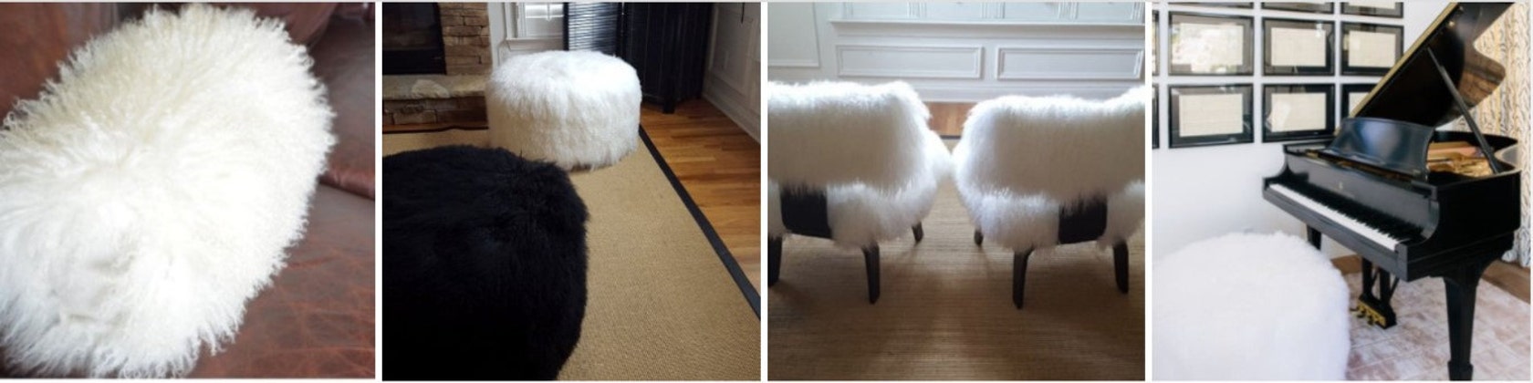 Thus began my search for fur to make them myself. After a couple of purchases from vendors where the fur was not as pretty and shed a lot, I finally found what I was looking for. It started with white until someone asked for sunshine yellow. Started with pillows until someone asked for a stool. Then a chair, then a bench, then this color, then that color. All items were added to my listings from items requested by someone.