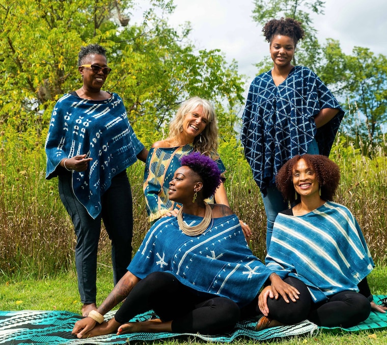Indigo Ponchos in the sunshine. -