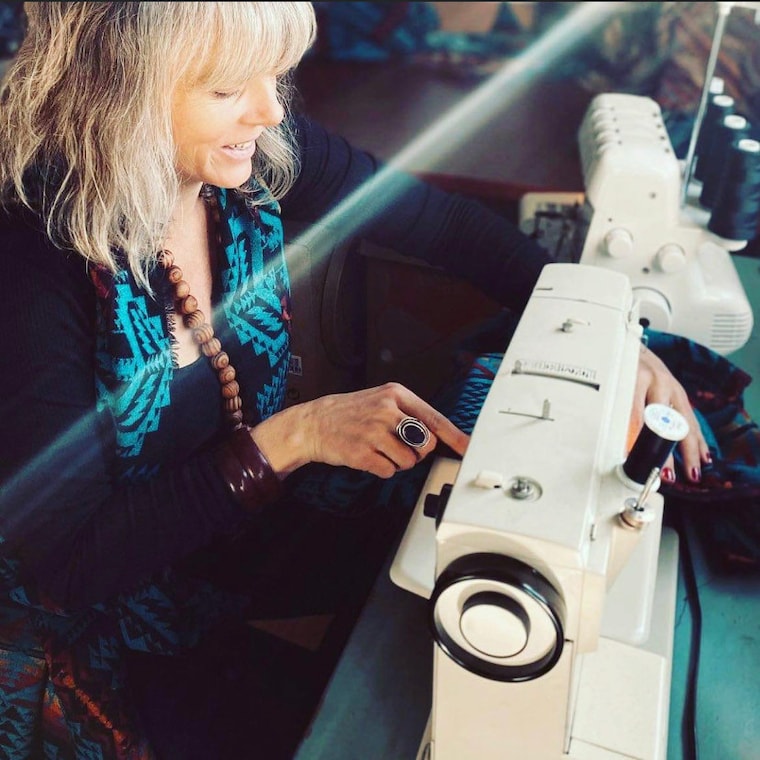Sewing in the studio. -