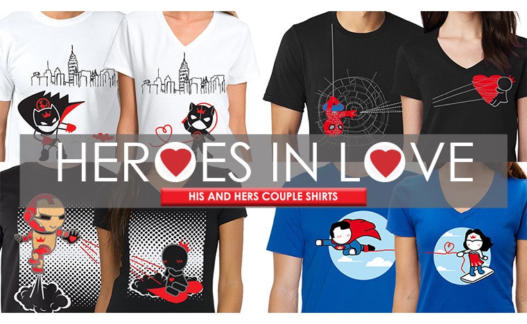 Looking for that perfect gift for your superhero? How about matching his and her superhero couple shirts? -