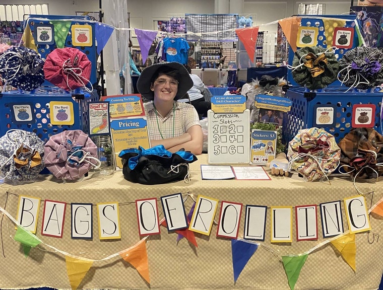 Bags of Rolling hopes to enhance the way you roll and store dice. We've created high-quality, handmade dice bags with not only tons of storage, but a tray to roll dice in too! No matter what style of bag you choose, with thoughtful hardware and durable stitching, your Bag of Rolling is assured to last through countless adventures and battles.