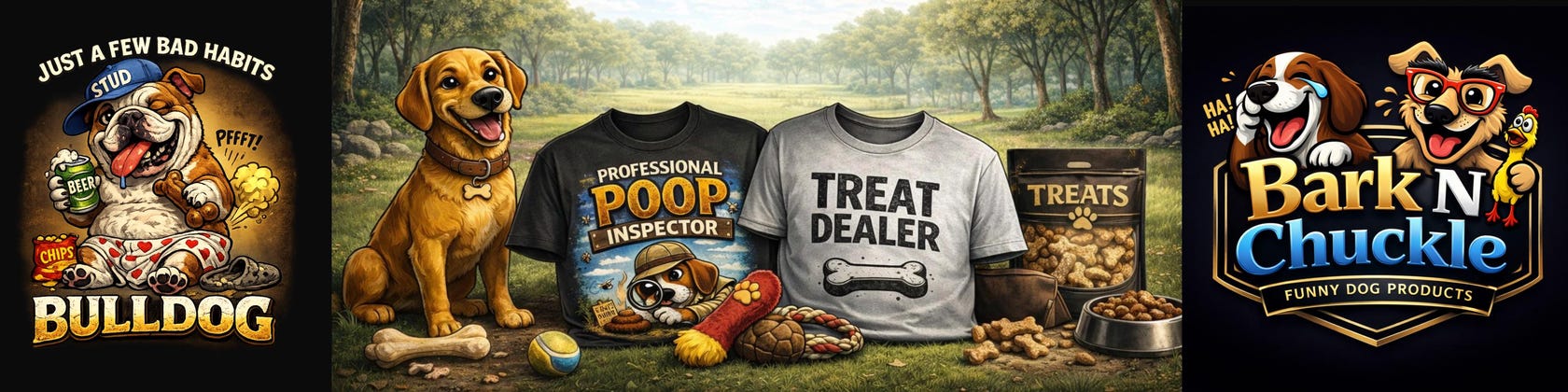 Bark N Chuckle creates funny, relatable dog-themed designs that capture the real, messy, and lovable life of pet owners.
