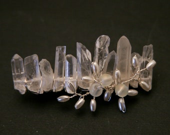 Quartz Crystal Clip with Pearls and Beads Beaded Alligator Clip, Boho Wedding Hair Accessory Bridesmaids Hair