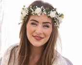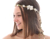 Rustic Floral Hair Vine of Ivory Daisies and Pearls, Beaded Woodland Wedding Hair Halo Flower Crown Boho Wedding Bridal Hair Wreath