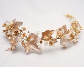 Leaf Headband Golden Leaf and Champagne Pearl Headband Woodland Leaf Wedding Hair Accessory Gold Wedding Headband Headband for Adults,