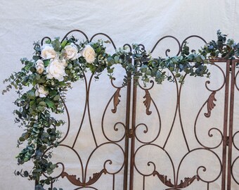 6 foot long Eucalyptus Garland with Ivory Flowers Wedding Floral wedding arch decoration, Long False Leaves Wedding Photo Backdrop