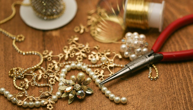 You try on my pieces under the light of a vintage chandelier -