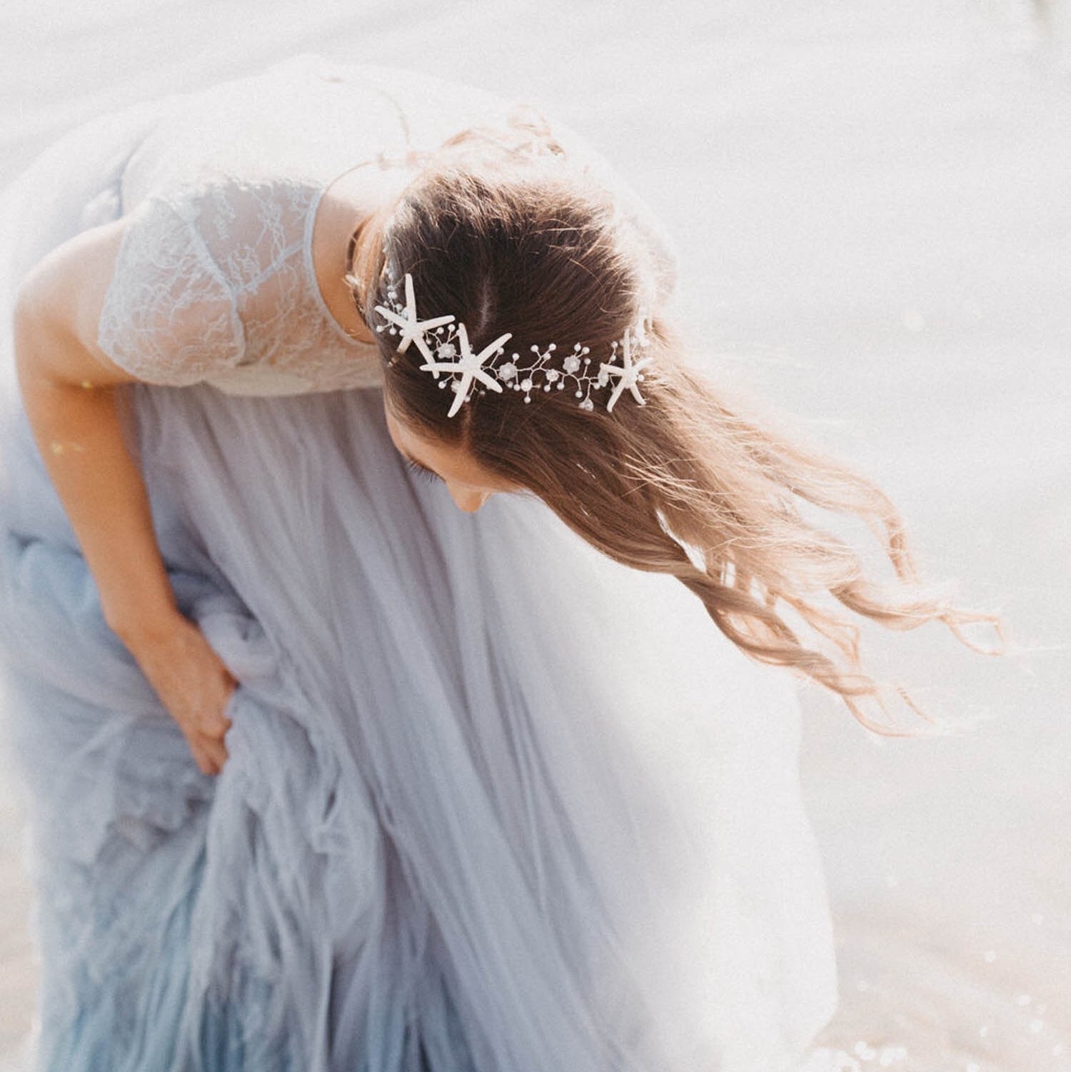 Beach Wedding Starfish Hair Accessory Wired Hair Vine, Nautical Wedding Headpiece, Destination Wedding Headband Starfish Headpiece