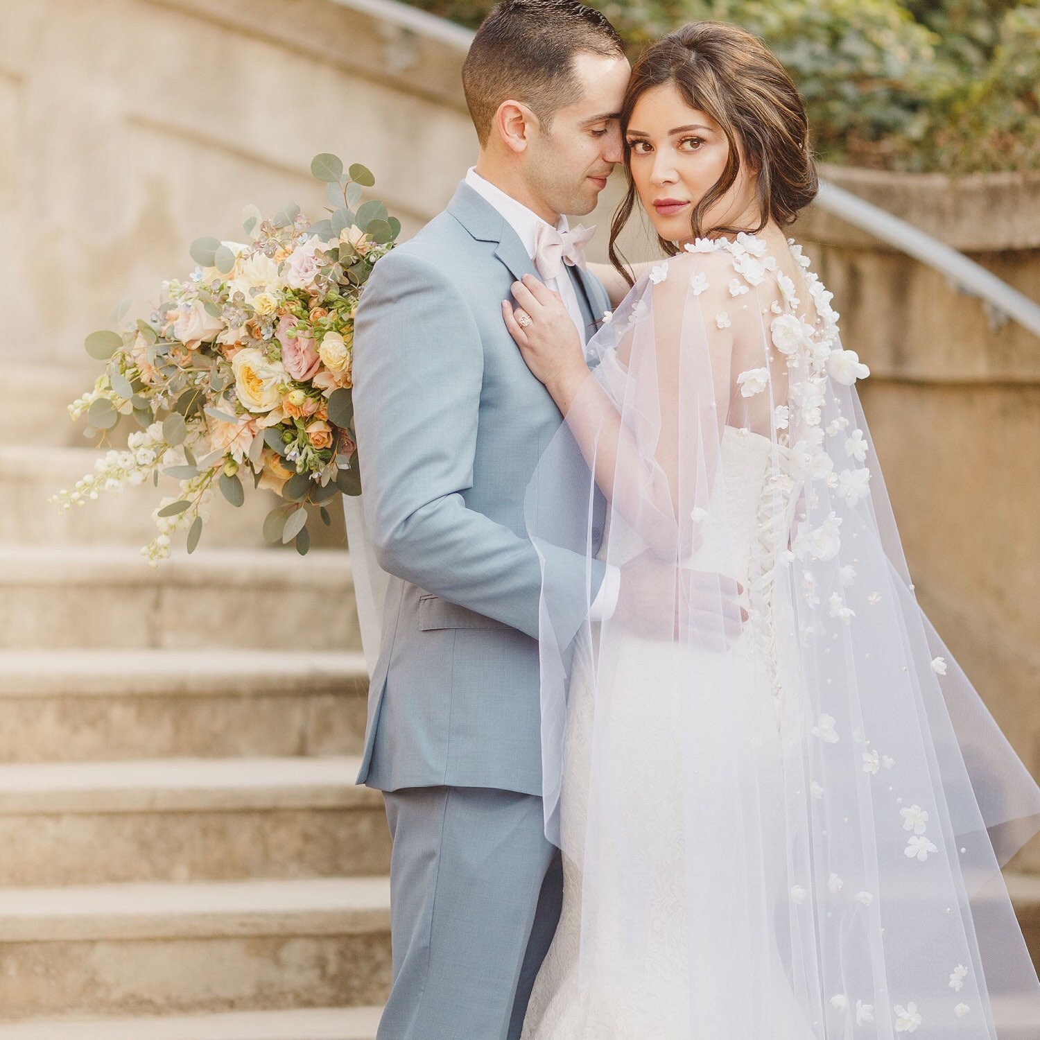 Wedding Cape with Flowers, Long Veil Cape Covered with Ivory Flowers and Pearls Cathedral Floral Veil Alternative
