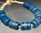 5 out of 5 starsooooh these rustic denim blue lampwork glass beads are so pretty in person ! Lovely blend of mellow blue colors, even prettier in person, perfect for my project, quick shipping too, I highly recommend this shop :]