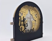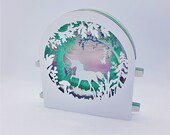 All templates shown on my store are pictured using only white cardstock. I typically use between 180GSM - 220GSM. I always use a piece of standard printer paper at the very back of the frame to ensure that as much light as possible comes through.