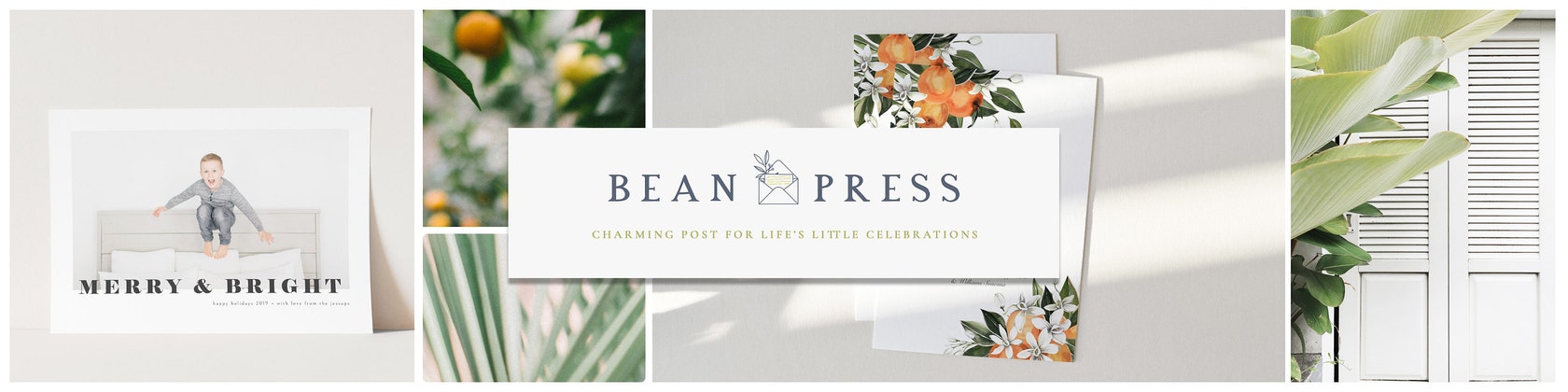 Bean.Press offers modern, beautiful digital design works for life's most precious moments. I specialize in printable party invitations, photo holiday cards, baby announcements, and bridal and baby shower invites. I also have a full line of beautiful, personalized note cards for adults and children--perfect for those "thank you" notes after the event or occasion.