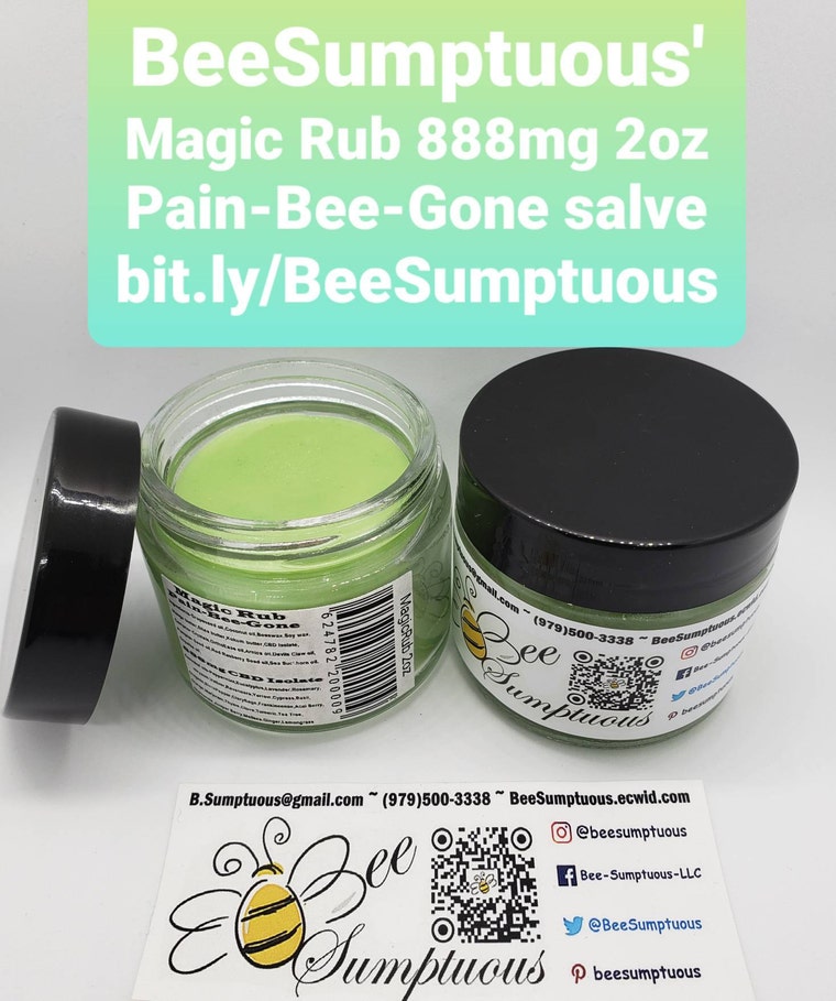 Magic Rub Pain-Bee-Gone 888mgCBD Shop now https://bit.ly/BeeSumptuous -