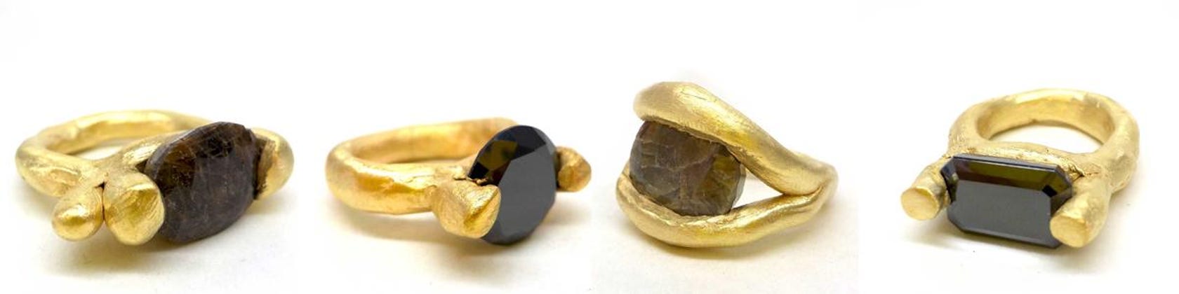 5 out of 5 starsEverything about Bego's rings and all other BegoFuente artifact designs' are uniquely hers, and the very reason I am so in love with her work! For the purpose of this ring, where she could have applied a commonly used diamond or other designer gem, she instead used a large, wonky faceted polychrome sapphire in gorgeous painterly bits of dark brown, rust, pale grays, with streaks of copper beneath the palest wash of desert sage. I loved the ring so much that I purchased it knowing it was not possible to have it enlarged due to its structure and other reasons that Bego explained to me, yet after a few days I decided to buy it anyway. In the long run, when it arrived, earlier than expected I might add, the ring fit perfectly! And the hefty gold band was gorgeous. Bego is a masterful genius who creates without fear...love that!