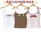 Hi! I’m Bella and I started this shop to make fun customizable Y2K inspired clothing. Each tank is made to order so you can pick your colors, school name, and graphics. I love designing pieces that feel unique, nostalgic!