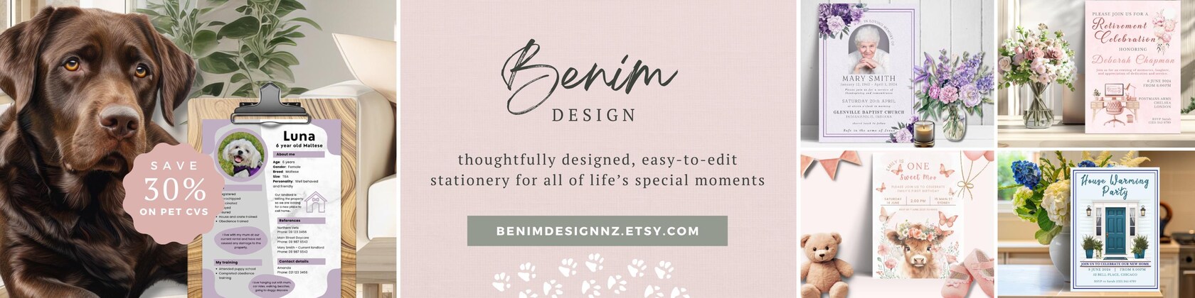 Hi, I’m the owner behind Benim Design — a studio dedicated to helping you celebrate life’s special moments with easy-to-edit templates. I handle everything myself, from design to customer support, and love the creation process. Thanks for visiting!