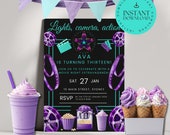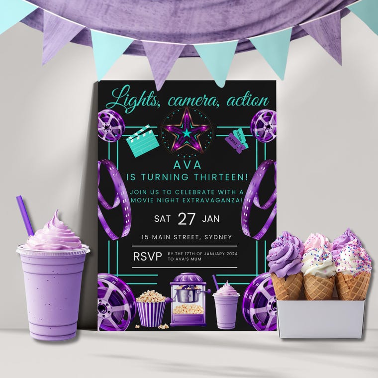 Lights, Camera, Action! Editable Canva Movie Party Invite. -