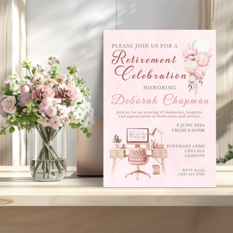 Printable Retirement Invitation – Soft & Feminine Design. -