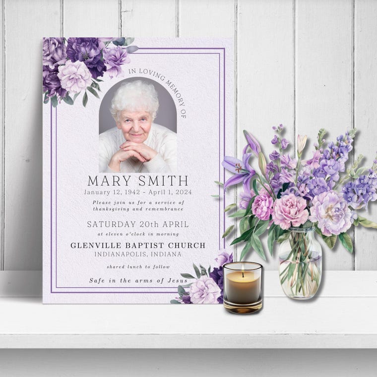 Elegant Memorial Invite – Editable Canva Template with Photo. -