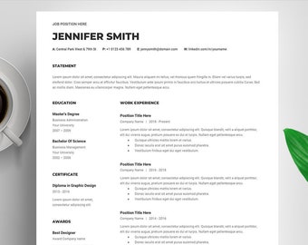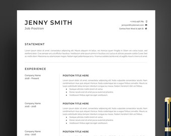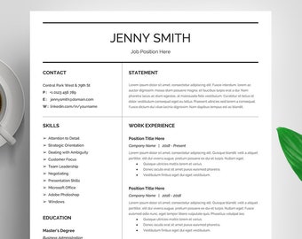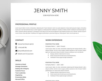 Resume Template Word Professional 1 Page Resume 2 Page Resume Modern Clean Creative Resume CV Template Cover Letter Instant Download