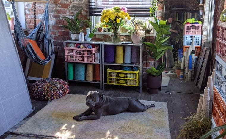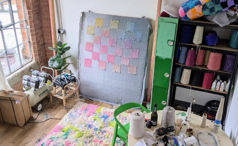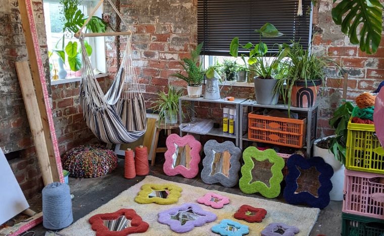 I work from my studio creating handmade tufted rugs, mirrors and other colourful home decor.
