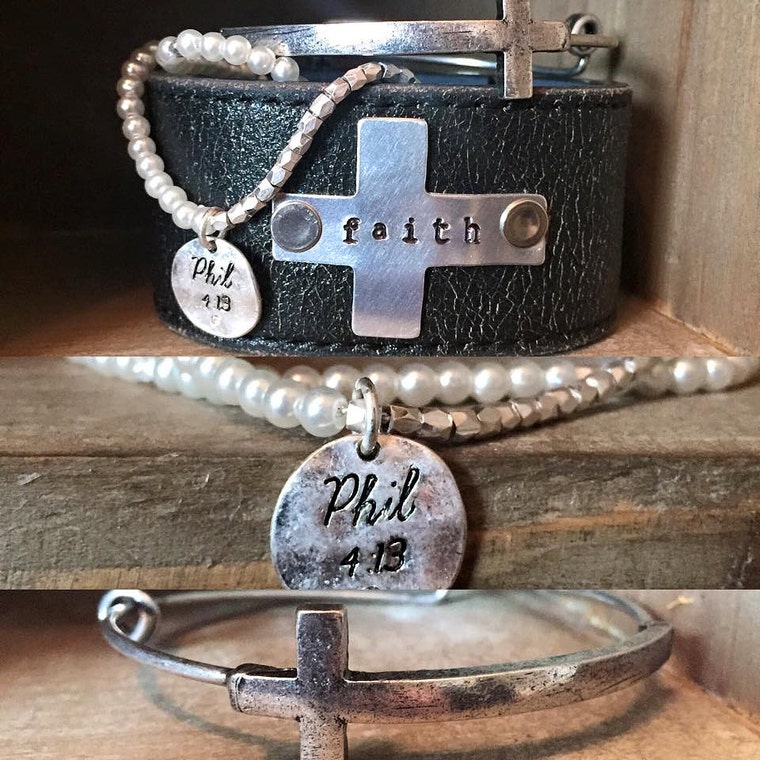 Hi, I'm Heather Woodcock. I kind of just fell into my business....learning along the way how to make these cuffs. I have found it is an amazing way to share a word/phrase/verse from the Lord. I hope to continue to do this for His glory!