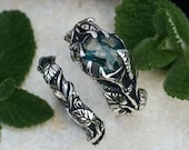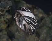 Oxidized silver, also called blackened silver, is sterling silver that undergoes a controlled darkening process to achieve a rich, matte patina. This effect is created by exposing the surface of the silver to sulfides, which accelerate the natural tarnishing process. The result is a layer of silver sulfide that coats the exterior, producing its signature dark, antique-like finish. Importantly, this oxidation process only alters the surface, leaving the internal structure and integrity of the silver unchanged.