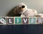 I love to create personalized wooden blocks because they are great photo props for the many memories that come with a new baby. New mothers enjoy my product because they are custom by name, color, and pattern for the new nursery or bedroom. I start my orders by painting the blocks with a white base or leaving them their natural wood, then I apply the craft paper with your preferred colors and designs. Finally I apply the vinyl lettering of your sweet baby's name. All orders are shipped in a timely manner of about 1-2 weeks after ordering.