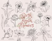 BLAUWE VOGEL. Lijn- en aquarel botanische bloemen clipart