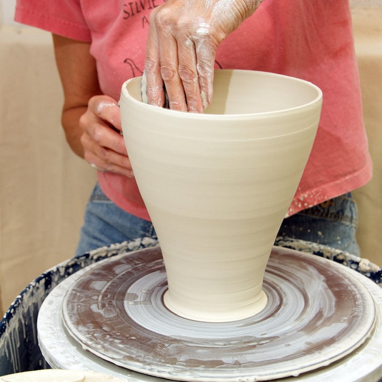 About 50% of my work is done on the pottery wheel and the rest is hand built from slabs and coils. -